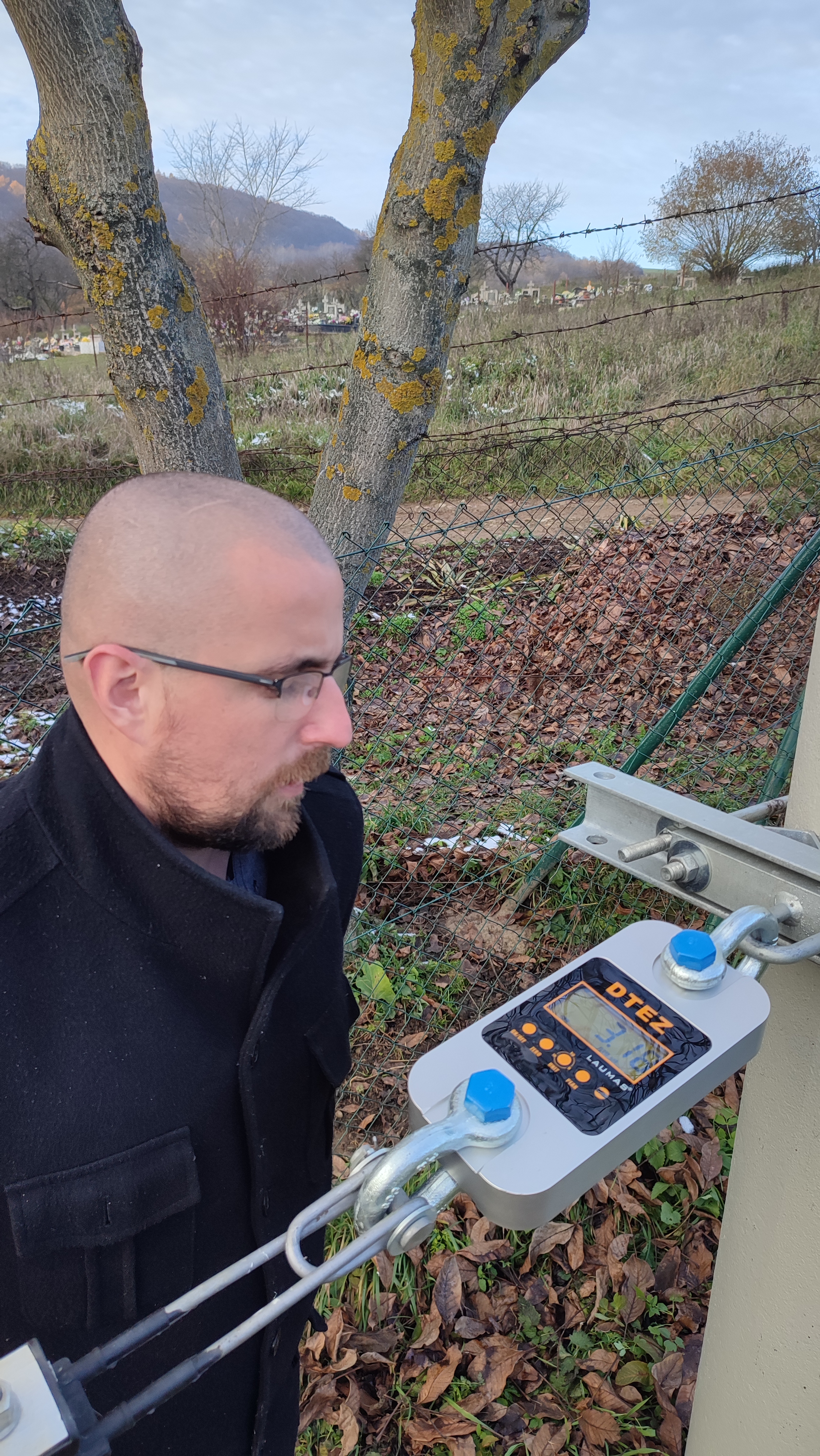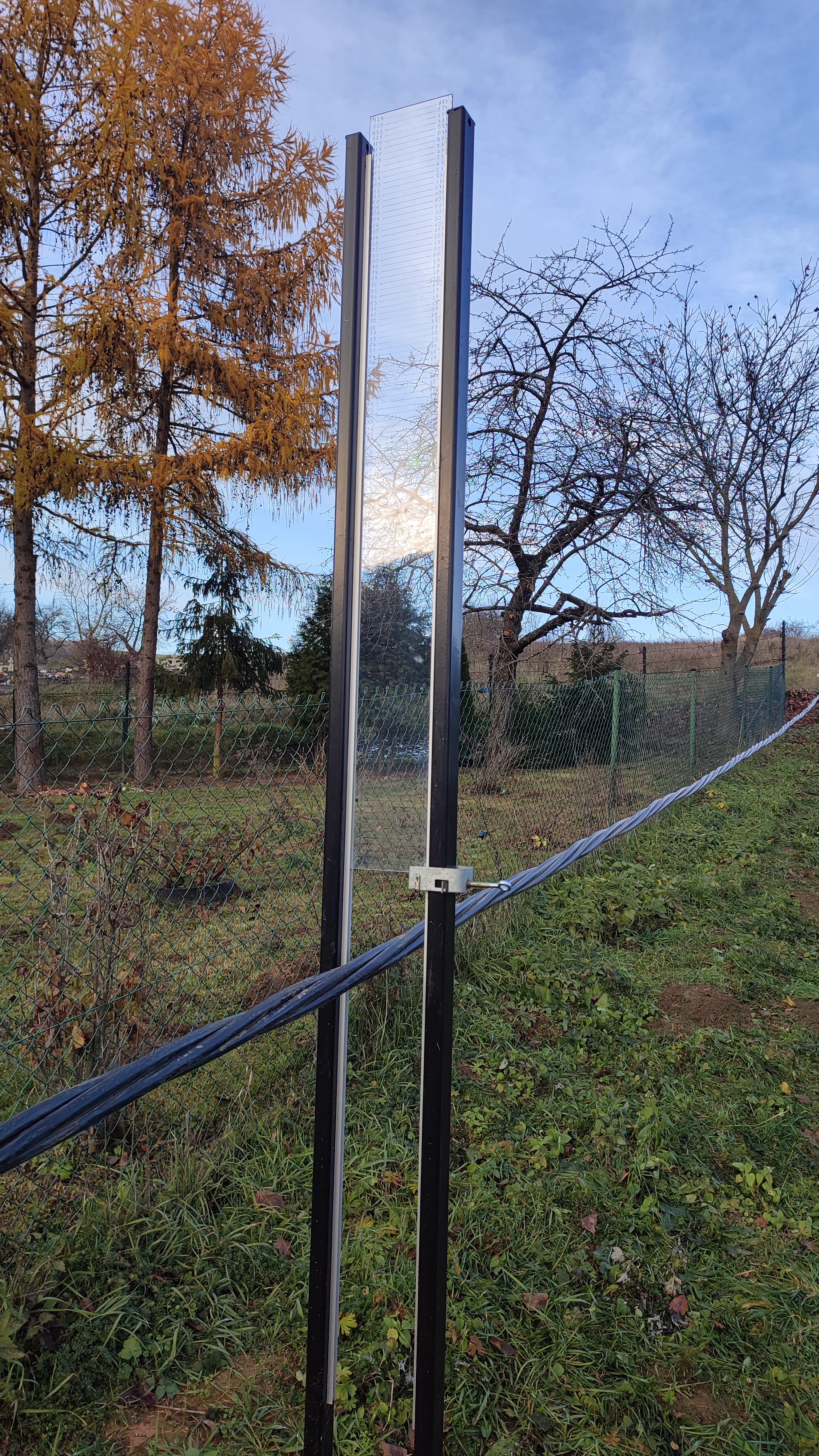 V obci Uzovské Pekľany na východe Slovenska v prírodnom laboratóriu na výskum mechaniky vonkajších vedení prebiehalo od 20.11.2022 do novembra 2024 celoročné meranie stavovej rovnice samonosného izolovaného kábla NFA2X 4×120 RM v rozpätí 35 m. Naša asociácia vytrvalo podporovala tento projekt. Počas merania sa na dennej báze zaznamenávala teplota (priemer z troch ortuťových teplomerov osadených v blízkosti kábla), priehyb a ťah. Výsledky z týchto meraní sa zapisovali a sú online zverejňované v tabuľke, ktorú si môzete pozrieť nižšie pod fotogalériou z prírodného laboratória. Predmetom merania bolo zisťovanie skutočnej závislosti správania sa samonosného izolovaného kábla NFA2X 4×120 v prírodných podmienkach v závislosti od zmeny teploty, a teda preverenie stavovej rovnice, ktorá sa v súčasnosti používa podľa platnej STN, resp. pri montáži predmetného kábla.